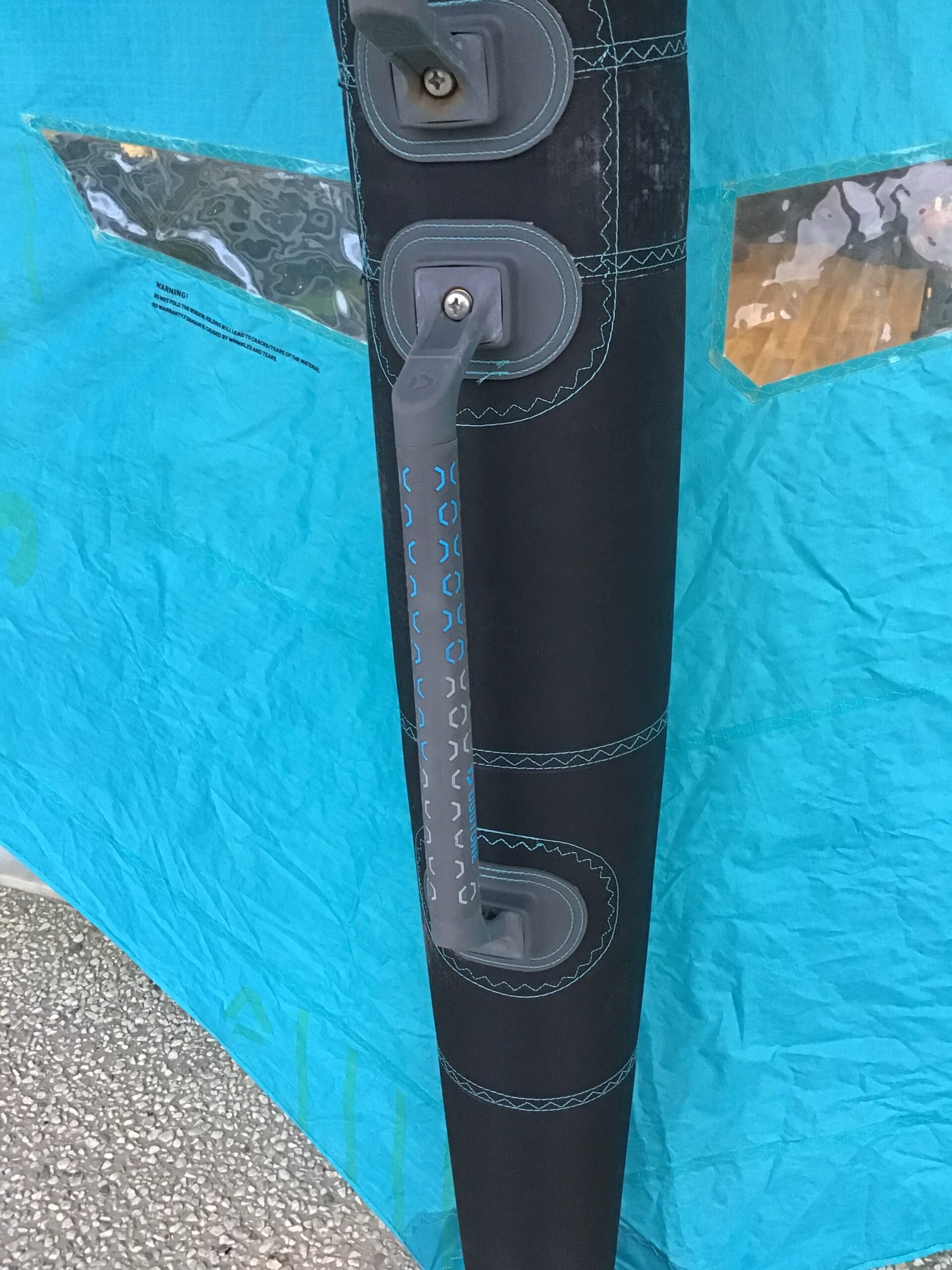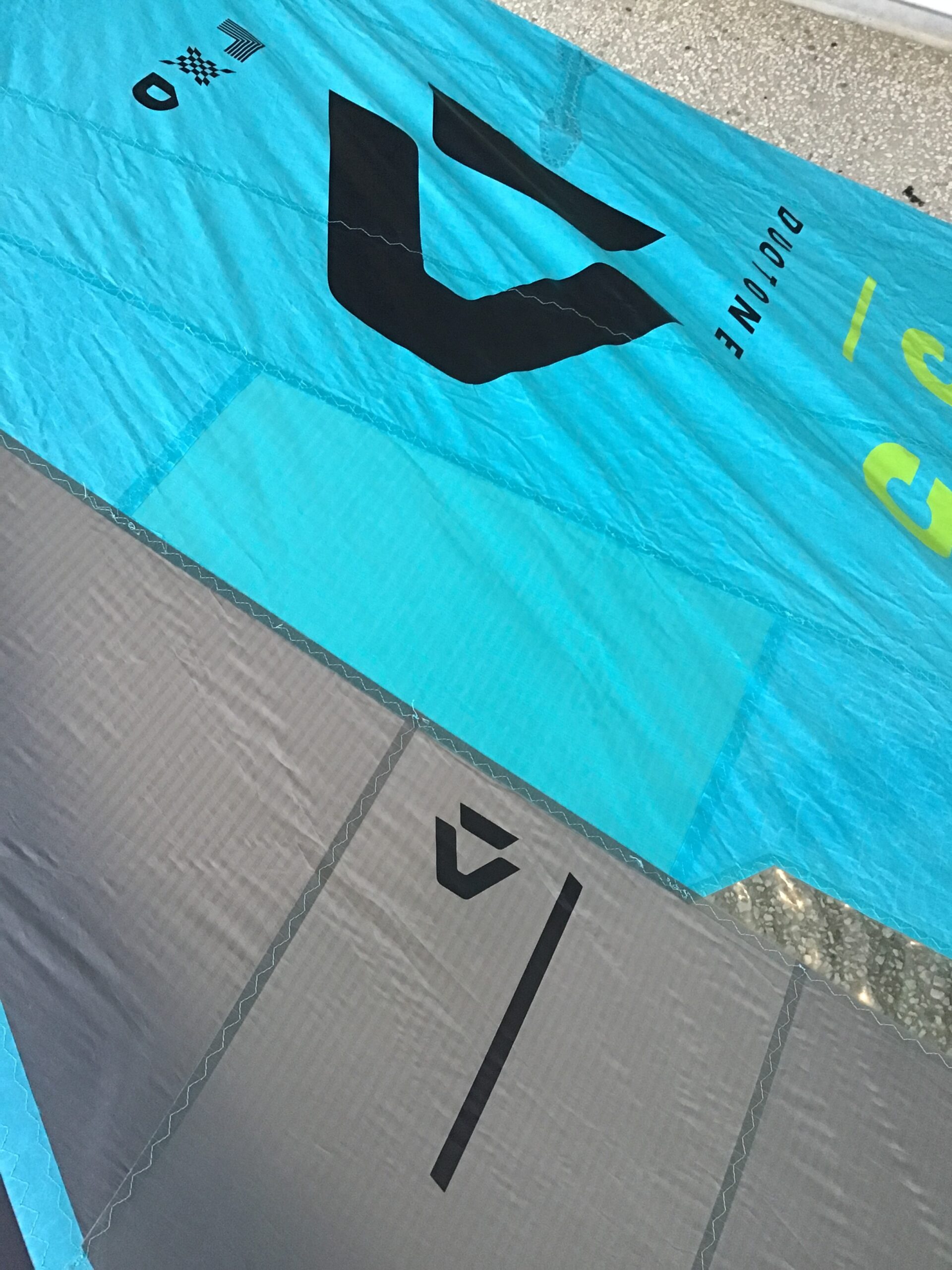 È stata riparata da un professionista con materiali originali Duotone, come visibile nelle foto, per garantire affidabilità, durata e prestazioni ottimali.
