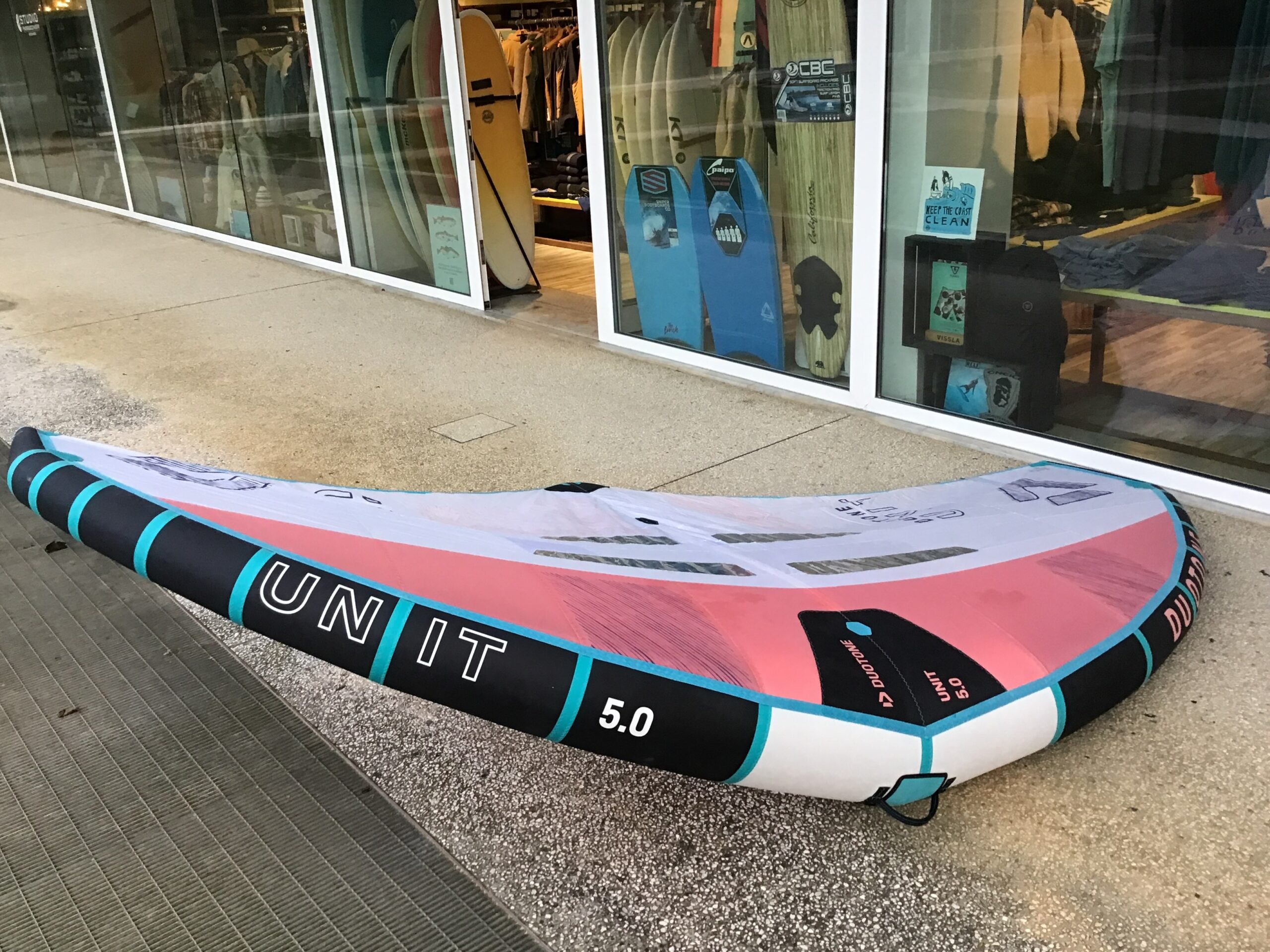 La Duotone Unit 5.0 è una vela da wing surf usata in buone condizioni generali, perfettamente controllata e selezionata dal nostro team.