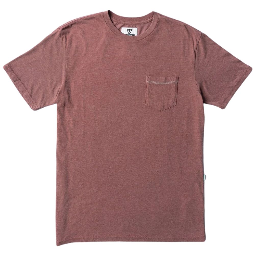 Vissla Solid Sets SS Pkt Tee. T-shirt uomo a maniche corte con taschino, colore Fibre (bordeaux). Cotone garment dyed con finitura soft e texture naturale.